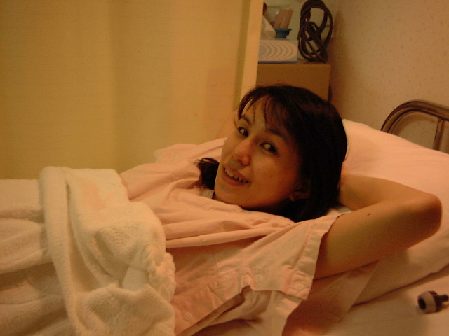 ピンクの入院服に着替え、陣痛室にはいる。どうやら私一人のようだ。別に痛くも何ともないので余裕である。 真基さんには残りの荷物と読みかけの本を取りに行ってもらう(どうもひまな1日を過ごすことになりそうなので)。病院が近くで助かる。