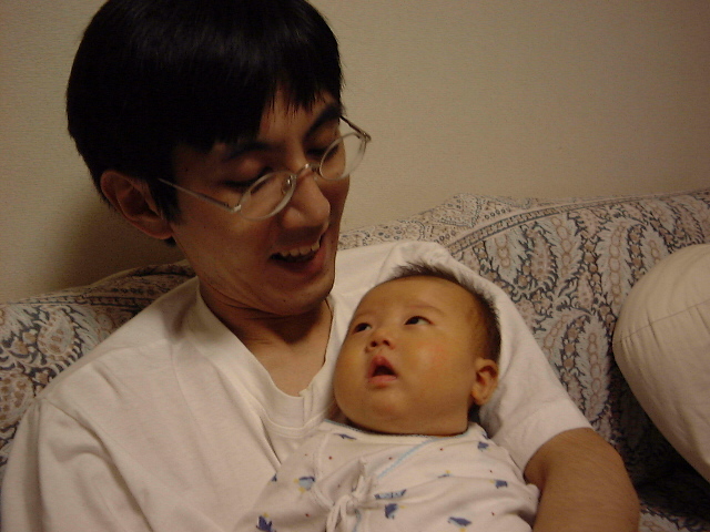 びっくり。日南子が今朝、声をたてて笑った。きゃきゃきゃきゃーとまるでお猿。ミッフィーのサークルメリーを見せていたのだが、すごい嬉しそうでにこにこ。半月前は全然楽しんでなかったのに。 笑い顔も、ここ2、3日はムシ笑いではなく、意志的になってきた。私と目を合わせてにやーっと笑う。ご機嫌な時が多くなってきた。握りこぶしをちぱちゅぱ吸うことが多くなってきた。目で動くものを追うようになってきた。(これも今朝分かった。真基さんが顔を左右にゆっくり動かすと、それに合わせて日南子も顔を動かすのだ。)