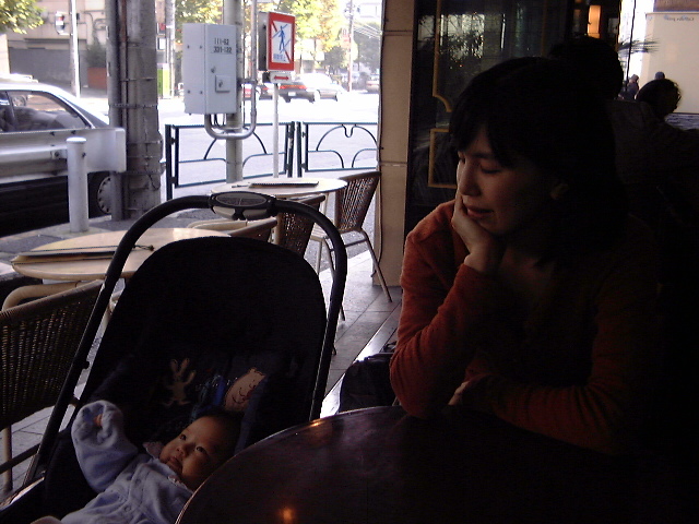 なんのことはない、単に散歩の途中に喫茶店に連れていったということだが。私はアイスクリーム、真基さんはコーヒー、日南子はただベビーカーに座ってるだけ。思えば喫茶店なんて3か月ぶりである。その後いつもの公園をぐるっと回って帰る。広尾には割とオープンカフェが多いので赤ちゃんづれでも入りやすいかも。それに今は気候がいいので外気浴にちょうどいい。