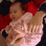 最近、日南子は脚ではずみをつけてよく横向きになるようになった。あと両手両足を変なふうに動かして妙なダンス(?)をする。とにかく動きがだんだん激しくなってきた。声もでかい。嬉しそうにうぎぎぎぎと変な奇声を発する。キャハっと甲高い笑い声も出すようになった。あと、物を自分の意志で掴もうとしはじめている。よく私のスカートとかをひっぱる。おもちゃを手でつついて落としたりする。少しずつ高度な動きをするようになってきている。