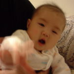 おすわりの様子をみてもらう。かなり出来てるとのこと(背筋が垂直に近く伸びてる。完成まであと一歩か)。自分の足をつかんで遊びはじめる日南子を見て、お医者さんが「自分の足の指しゃぶるようになった?」と聞いてきたので、ついこの前からするようになったと答える。やっぱりこのくらいから足をしゃぶる子が多いらしい。最後に喉が腫れてないかチェックして診察は終了。