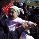 いざ試合が始まると、太鼓の音やら応援の声やらで日南子パニック。泣き出す。真基さんが日南子を抱っこして席を外す。私と母は、ついつい試合に熱中して日南子そっちのけ。この日はなんとコンサドーレは6対0で大勝!!2人で大喜び。後で真基さんに聞くと、通路には泣き出した赤ちゃんを抱っこして席から逃げてきたお母さんたちでいっぱいだったとか。たしかにあの応援は赤ちゃんにとっては恐怖以外のなにものでもないだろう(じゅんちゃんのいうとおりだった。じゅんちゃんは、日南子を試合に連れていくと言ったら「応援の音、大丈夫かい?」と心配していたのだ)。