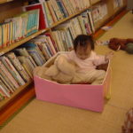 着くと、今回は「お店屋さんごっこ」とのことで、八百屋さん・おもちゃ屋さん・アクセサリー屋さん・お菓子屋さんと貼り紙してある机が置いてあった。折り紙で財布をつくって買い物ごっこ開始。しかし日南子はまだそんなの理解できないので一人きままにあちこち探検して歩いていた。ぶたさんのぬいぐるみが気に入ったようで抱っこしている(日南子は現在風邪をひいていて鼻水ずるずるで、申し訳ないことにぶたさんは鼻水まみれになってしまった)。しかたないので私が買い物ごっこに参加。ちょっと虚しい。日南子はなぜかおもちゃ箱に入っていて幸せそうであった。最近、箱に入るのが大好きなのだ。家でもりんごの入った段ボールに入るのが目下のお気に入りである。