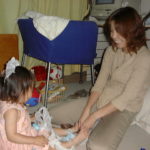 まるがちょっと早めに帰った後、日南子は今度はえっちゃんにずーっとはりついて遊んでもらっていた。ケーキの包装紙の紙吹雪に歓声をあげる。そのえっちゃんといがりんもいよいよ帰宅する時間が来たら、「あれ?なんでみんなかえっちゃうの?」ってちょっと泣きそうな顔をしていた。玄関でばいばいって見送る。また今度遊びに来てもらおうね。