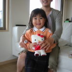 日南子に制服を着せて写真を撮る。本人はまんざらでもなさそうでニコニコ笑っている。 (はっきり言って幼稚園というのが何をするところなのか、それとこれから毎日行かなければならないということを理解していない)