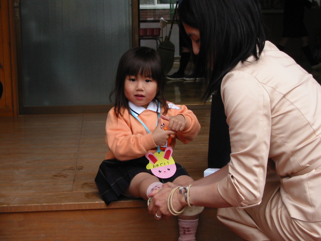 入園式が終わり、園児たち退場。あいにく先生や泣いている子の付き添いのママの影になって日南子がどんな様子か見えなかったがとりあえず泣いてはいないようなので安心。その後、お母さんたちに先生からいろいろ説明があった。お弁当は最初は少なめにしてくださいとか、持ち物全部に名前をつけて くださいとか。