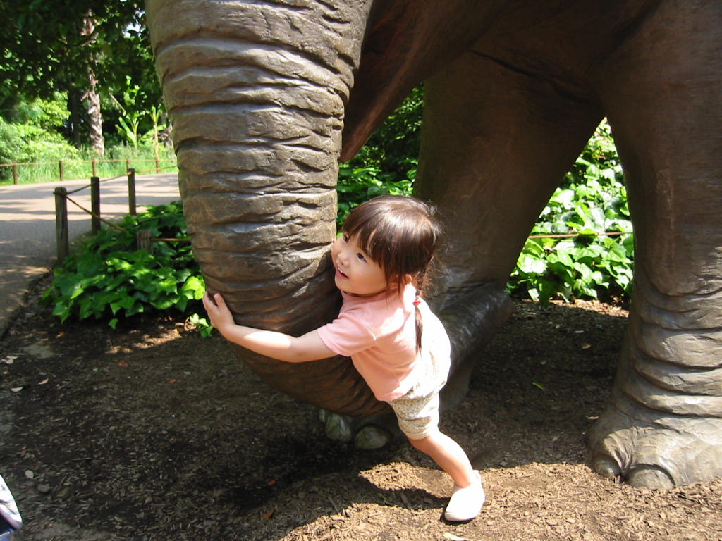 その後、日南子が「アイス食べたい」と騒ぎ出してきかないので仕方なく大アリクイとオカピを見るのを諦めてアイスショップへ。 途中、広場の大滑り台にひっかかる。ゆづ、夢中で何回も滑りました。キリがないので半ば無理矢理ひきはがしてアイスを買って食べる。 一番喜んだのは小川の水遊びとアイスだったかもしれない。次回こそはオカピと大アリクイを見るぞ!